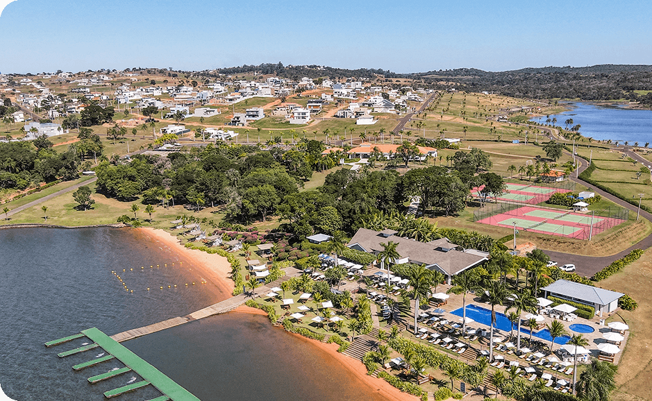 Um loteamento fechado, com controle de acesso 24 horas, mais de 465 mil m² de área verde preservada, ecopista, rampa para barcos e um clube com estrutura de lazer completa.